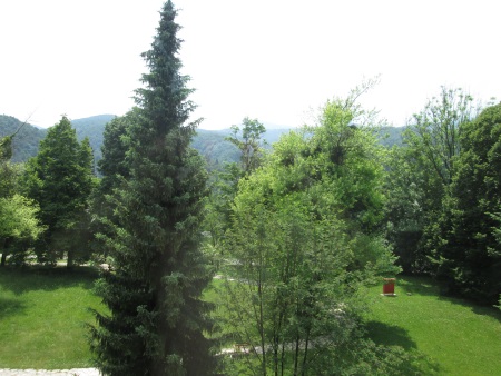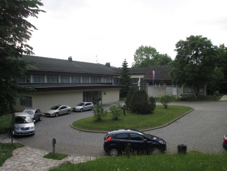 | 隔壁教堂的鐘聲七時響起,噹噹噹數十下,房間的鬧鐘甚是多餘。在斯普利特逗留兩晚之後,乘坐長途巴士繼續行程,在巴士總站買了兩個麵包作早餐便登車。這輛巴士比較舊,車程連中途休息更需五小時,也真累人。我們的目的地是十六湖國家公園 (Plitvice Lakes),下車後走一段路,入住國家公園入口附近的 Hotel Plitvice。酒店房間很寬敞,衣櫃、書桌、床等家具款式懷舊,但也整齊清潔。打開窗,眼前是酒店庭園,遠處山巒起伏,綠意充盈。更聽見國家公園傳來沙沙的瀑布聲,真是世外桃源。 |