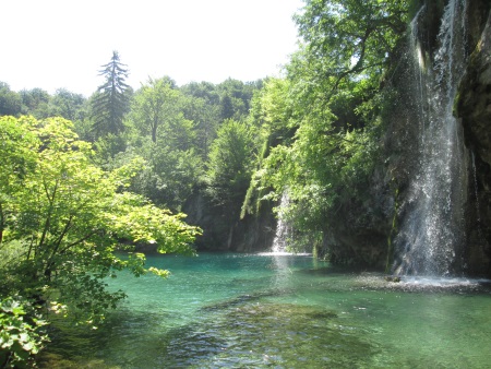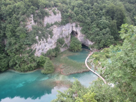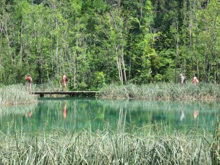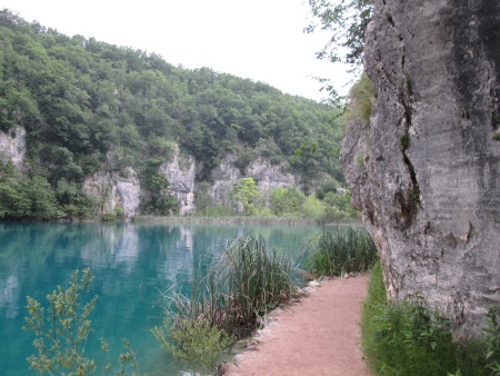 好久沒有吃過東西,不免饑腸轆轆,便到剛才經過的自助式餐廳用膳。一列架上放置食物和飲品,顧客自行揀選放在托盤再去付款。選擇不算多,拿了一碟豬排飯,再加一條以檸檬片覆蓋的冷凍魚,意料不到的鮮美。 十六湖國家公園是到克羅地亞旅遊必到之地,幸好此時旅客不多,可以靜心享受環境。乘坐小船橫渡最大的湖 Kozjak,湖中有鴨子和黑色的魚。山水環抱,帶點清涼。十六個湖風光秀麗,湖與湖之間由小瀑布或急流連接,流水淙淙。湖水含有特殊的礦物質,因此呈現迷人的藍綠色。無論走在以木條搭建的步道或是岸邊小路,都跟湖水十分親近,融入大自然該當如此。 |