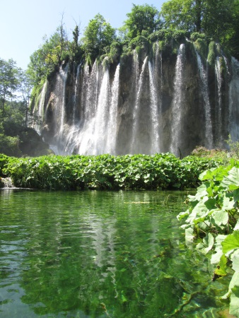 | 入住國家公園的酒店,可把國家公園的一日門券拿給酒店服務員蓋印,第二天便可憑同一張門券再次進入。早餐後我們步往昨天沒有到過的上湖區,首先看見一連串清新的小瀑布。有些湖比較平靜,就連倒在湖中的枯木也充滿美感。因為湖水的礦物成份,水中的草木逐漸鈣化成灰色。經過數千年的時光,礦物質也形成了這十六個湖的堤壩和瀑布。 |