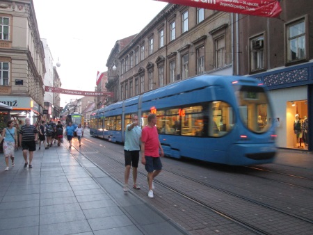 | 在舒適的房間內懶洋洋的,一直到六時才外出用膳。Vinodol 是許多旅遊書都有提及的餐廳,室內環境雅致。點了漢堡牛扒和豬柳串燒,味道還可以。轉過街角,在一間克羅地亞特產店買些手信,便移步到市中心的 Jelacic 廣場。沿途的酒吧座無虛席,氣氛熱鬧,廣場也架設了大型電視屏幕,人群開始聚集。原來是歐洲國家盃外圍賽即將上演,民眾正準備觀戰。我們也乘着熾熱的氣氛看了一會球賽直播,才在昏黃的街燈下返回旅店。 |