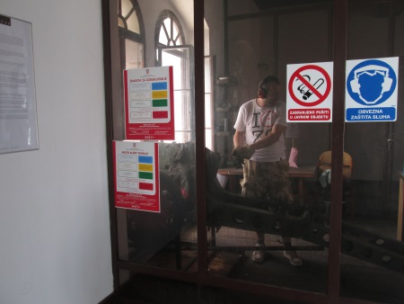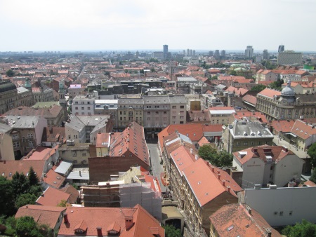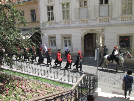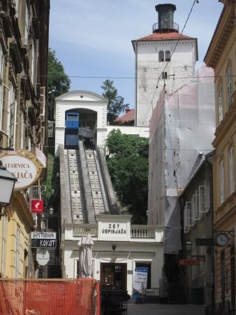 乘坐薩格勒布的藍色電車到市中心,只有少數商店仍然營業,街道冷冷清清。登上全世界最短的纜車,造訪上城區的警盜鐘之塔 (Lotscak Tower)。接近中午,我們在發放午炮的房間外觀看,身形健碩的炮手友善地請我們進內拍照。時間越來越接近,我們回到房間外緊張地看着他準備,雙手捂着耳朵,最後終於砰然一聲巨響!相信整個下城區都能聽見,以前人們便是以這午炮為標準來調較時鐘的。在塔的頂層可以環顧上城區和下城區,聖母升天大教堂的雙塔十分注目,聖馬可教堂那邊的換班儀式已經開始,圍觀者眾。