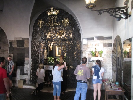 見不對勁便返回原路,找到錯過了的路口,不多時便走到斜路上的 Stone Gate。那是上城區僅存的城門,百多年前一場大火焚燬附近一切,唯獨聖母像無恙,被認為是神蹟,自此不少信徒前來跪拜。一隊儀仗隊忽然經過,有人騎馬持旗,有人奏樂擊鼓,後來才知是聖馬可教堂中午換班儀式之後的列隊巡遊。穿過 Stone Gate,我們在 Trilogija 餐廳吃午餐兼補充水份。圓拱型的頂部以紅磚砌成,彷如進入舊倉庫。點了的鴨小腿和鱸魚都很香很美味。