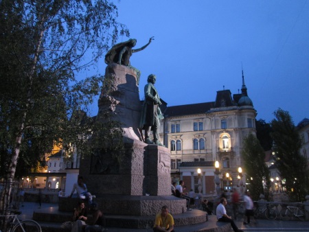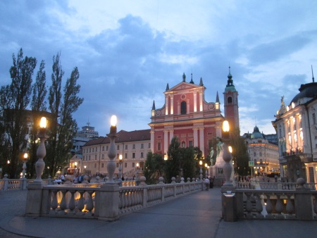 | 盧布爾雅那雖是一國之都,但人口只有二十多萬,就算身處市中心的 Presernov 廣場,感覺也像是小鎮而已。天色開始入黑,廣場的街燈亮起,周圍的教堂、銅像和三重橋也添上浪漫色彩,特別迷人。 |