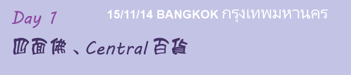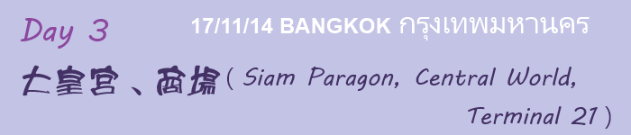 泰國是香港人的熱門旅遊點,朋友和同事聽我說從未到過泰國,都覺得奇怪。其實我也一直想去見識一下,卻屢次因政局不穩而改變目標,很高興這次終能成行!請教了經常到曼谷的同事,自己也借了些旅遊書來參考,四天的自由行旅程不難計劃。這次與母親和弟弟同行,目的地又是未到過的,所以在興奮之餘也有點緊張呢! 乘坐十二時許起飛的泰航班機,是很久沒有坐過的波音 747 客機,座位空間也較闊。航程大約兩個半小時,吃過飛機餐、填完入境表後好像很快便開始降落了。曼谷新機場頗大,走一大段路才到達辦理入境手續的櫃位,取回行李之後便啟程進入市區了。由於機鐵快線停止服務,唯有乘搭普通線 City Line,車廂又新又整潔,大約半小時後抵達終點站 Phaya Thai,不過仍需要轉乘架空鐵路 (BTS) 才可前往市中心購物區和大部分酒店。 BTS 十分擠逼,我們其後發現無論日夜都如是,大概因為市內經常塞車,當地人都避免路面交通工具吧。 滿以為選擇的 Emporium Suite 酒店直接連結 Emporium 商場,那便可以經商場直達 BTS 站,怎料在 Phrom Phong 站下車後發現商場正在裝修,只能走樓梯到地面繞到酒店大門,真是失算了。酒店房間很大,甚至有廚房,但裝潢已有點過時和陳舊,下次決定住哪間酒店時要再做足一點工夫了。