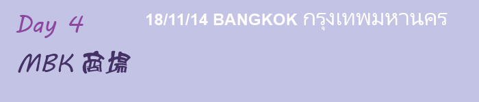 昨晚回到酒店已很疲倦,要早點休息,所以今天吃過早餐後需要先收拾行李,再出發到 BTS National Stadium 站的 MBK 商場。這個商場屬中低檔次,每層仍像無底深潭,有如五座旺角中心併在一起!貨品林林總總,有服裝、鞋、手袋、玩具、藥品、鐘錶、電腦用品、手機、紙品等等,是尋寶勝地。我們只逛了兩層,便到五樓美食廣場找吃的。那兒雖有薄餅、印度烤餅等,選擇算多,但就比較貴而且味道普通,怪不得顧客疏落。