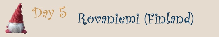 午餐吃鹿肉,切成小小的一片片,下面有牛油薯蓉,所以吃得多了會覺得油膩。之後到了大約三時半,我們到達羅凡尼米 (Rovaniemi) 的聖誕老人村,是旅程中令人十分期待的行程。我們第一天深入挪威北部的希爾克內斯,其後往南移動,現在到了羅凡尼米已是退到北極圈的邊緣。聖誕老人村也有四支標柱顯示北極圈的位置,讓遊客拍照留念。廣場鋪了白雪,高高的聖誕樹上燈飾閃爍,人人都在這樣濃烈的聖誕氣氛下笑逐顏開,盡情享受。