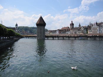 ¦b¶W¥«¶R¨Ó¯NÂû»L¡A¦b¤õ¨®¯¸ªºªø´È¤W³s¦PÄÑ¥]¤@°_¦Y¤F·í§@¤ÈÀ\¡C§Ú̦b¤@®É³\§¤¤W¤õ¨®Ä~Äò¦æµ{¡A¦C¨®¦b Meiringen ±¼ÀY«á¶}©lª¦¤É¡A¦Ü®ü©Þ¤@¤d¦Ìªº¤sËü«á¤U©Y¡Aªu³~³£¦³¬üÄRªº¤s©Y¡B§ø²ø©M´ò¡C¬ù¤@¤p®É¥|¤Q¤ÀÄÁ¤§«á¡A¦C¨®¾p¶i³W¼ÒÃe¤jªº¯[´Ë¨®¯¸¡C ¯[´Ë¹C«È²³¦h¡Aµó¹D¤Wº³º³ÄcÄc¡A«Ü¬O¼ö¾x¡C¯[´Ëªº¦a¼Ð Chapel Bridge ´N¦bªþªñ¡A¨º¬O¤@®y¦³»\ªº¤ì¾ô¡A¤W»\ªº¼Ù¤WÁÙø¤F¹Ïµe¡C¥i±¤¤j³¡¤À¹Ïµe³£¦b¤@¦¸¤j¤õ¤¤³s¦P¤@¤j¬q¾ô±µIÀì¡CÁöµM¤ì¾ô¤w¸g×´_¡A¦ý¹Ïµe¤´¥¼Ã¸¤W¡C ¹ï©¤¬OÁc¦£ªº°Ó©±µó¡A¥HªA¹¢©±¬°¥D¡C³o«°°Ï¦³´XÓ¤p¼s³õ¤]«Ü¬üÄR¡A¦³¨Ç«Ø¿vª«ªº¥~Àðø¤W¤F¹Ïµe¡A¦ý¹C¤H´N¬O¤Ó¦h¡CªuµÛ¤H³Ì¦hªºµó¹D¨«¡A¶R¤FªM³·¿|¦Y¡A¦Ó¤j«¬°Ó©±¤w¶}©lÃöªù¡CºN¯Á¤F¤@·|¡A³Ì«á§ä¨ì§Ú̪º¥Ø¼Ð·à¤l¸O¡C¨º¬O¯[´Ëªº¥t¤@¶H¼x¡A¬O¬°¬ö©À®î¾ªº·ç¤h¤h§L¦ÓÀJ¦¨ªº¥ÛÀJ¡A¦ì©ó¤½¶é¤ô¦À«á¤è¡CÃÀ³N®a¦b¤@´T¥Õ¾À¤WÀJ¥X¨ü¶Ëªº·à¤l¡A¨ºµhWªí±¡¥O¤H¦L¶H²`¨è¡C·à¤l¸Oªþªñªº¤â«H©±¦h¼Æ¦³»¡´¶³q¸Üªº©±û¡A¨Æ¹ê¤W¤]¦³¤£¤Ö¤º¦a®È¦æ¹Î«e©¹°ÑÆ[¡C