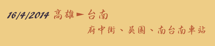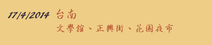 | 得知五月不能如願放假,東京之旅要押後了,只好利用復活節假期到台南走走。其實早在二月已曾計劃過台南之行,最後卻因請不到假而告吹,這次就正好讓計劃復活了。 |