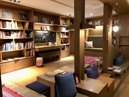 到了捷運站的月台,發覺班次頗為疏落,原來高雄今天仍然停班停課。抵達美麗島站,一上路面便見到整行的塌樹。這次選擇的旅店是鶴宮寓,由舊旅館翻新而成,保留了懷舊的門面和招牌。上一層樓梯之後的範圍是新鋪的木地板,要先脫鞋換上旅店的拖鞋。房間的空間雅致有特色,大窗引入自然光,家具配置得宜。 |