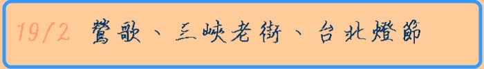 三峽老街兩旁是一兩層高的紅磚老屋,曾是商業繁盛的地方,現在則成為旅遊景點,商店售賣食品、玩具、日用雜貨等。在騎樓慢慢走,偶然停下察看店內貨品,亦很寫意。在街尾吃過牛肉麵,再回頭走回起點,附近有幾棵櫻花樹正開得燦爛。今天比較熱,幸好上到一部公車可以快速回到板橋的酒店休息。 |