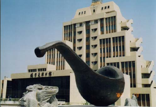 The chief of the academic affairs department was there also. Firstly, the chancellor gave us a brief history of Xi'an and the local culture of the city. STU received (only) RMB$30,000,000 a year from the government, much less than any university in Hong Kong. There were about 12,000 students and staff in STU. After the meeting, the chancellor presented a badge of STU to each of us. Then, we visited the library of JTU. It was rather dark in our standard, but it had the good atmosphere for a library. Very quiet. We came to a room which entry was restricted. There were old books which were packed in wooden boxes, and we saw some very large books and pictures. The chief librarian showed us some ancient and precious collections, like an written order of an emperor in the Ming Dynasty 明朝聖旨, an original script written by Leung Kai-Chiu 梁啟超 etc..